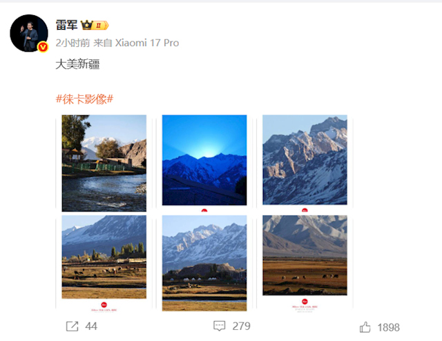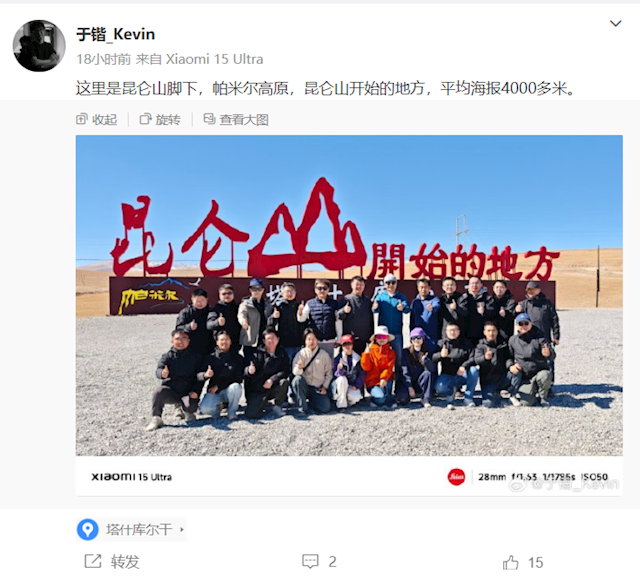此外,小米汽车产品部总经理于锴发同款帕米尔高原合照,IP属地亦为新疆,高管集体参与。
