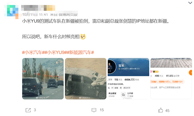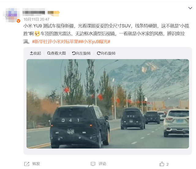 虽未直接提YU9,但高管集中行动与小米 SU7、YU7 发布前 “高管督测” 惯例吻合,间接证实YU9同步测试。