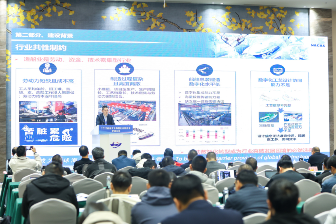 10月23—24日,由中国船舶工业行业协会联合有关单位共同组织召开的“2025船舶工业数智化创新技术交流大会”在山东省烟台市圆满举行。大会以“新质生产力助力船舶工业高质量发展”为主题,来自全国船舶制造企业、科研院所、高等院校及配套供应商300余人参会,与会嘉宾围绕船舶工业数智化转型的关键议题展开深度探讨,为我国船舶工业迈向高质量发展注入新动能。中国船协副秘书长谭乃芬、山东船协常务副秘书长苏波、中国船协工业软件分会主任委员何春荣分别主持会议。