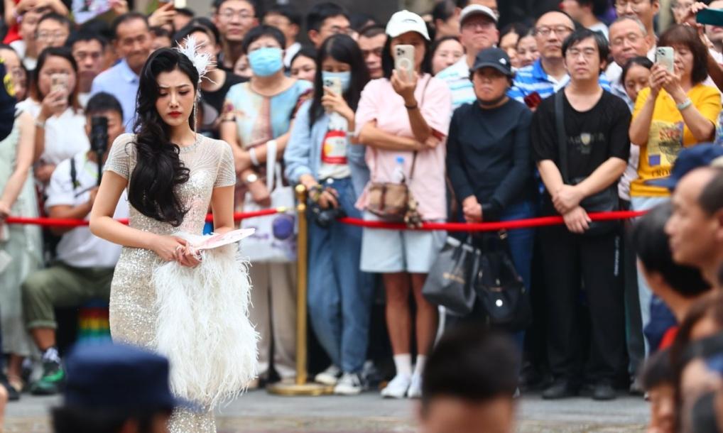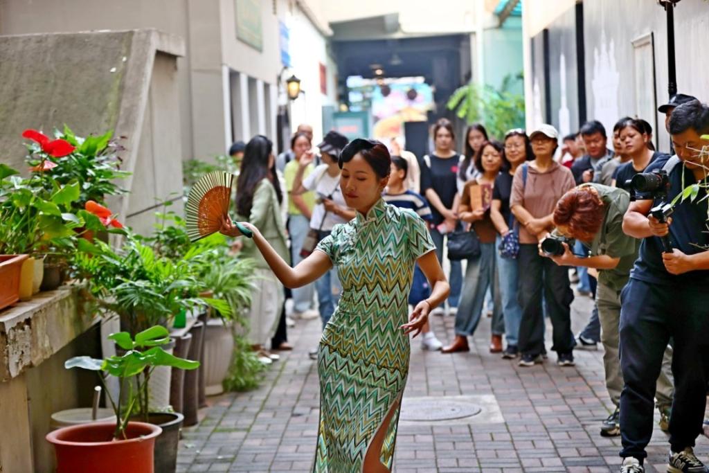 “国庆游艺会”打破传统观演边界,让观众从被动观看变为主动参与。中国大戏院副总经理杨蕾告诉记者,每日上午,戏院弄堂里将上演优雅的“旗袍丽人舞”;下午,“共舞场”将上演古彩戏法快闪;傍晚,二楼阳台将推出戏曲快闪,京剧《贵妃醉酒》与《霸王别姬》延续梅派艺术薪火,让传统艺术与都市夜景交相辉映。
